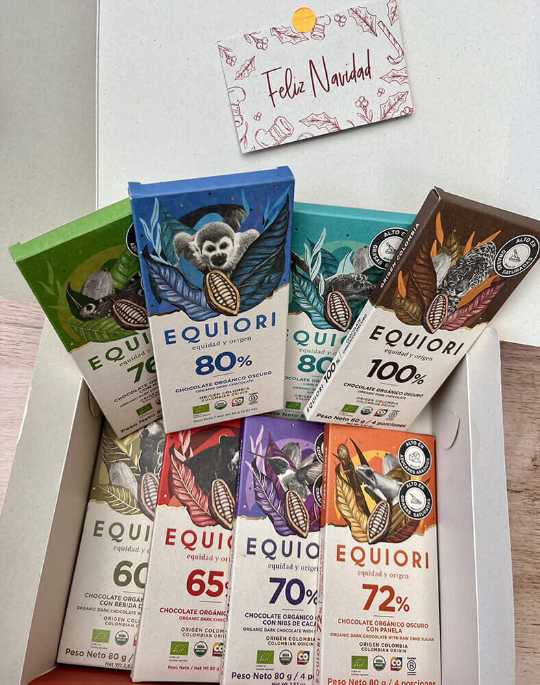 This kit does not allow exclusions. Here you will find all our chocolates, from the least bitter to the darkest. A journey through flavors and textures that will give you the best experience of 100% organic and Colombian chocolate.
